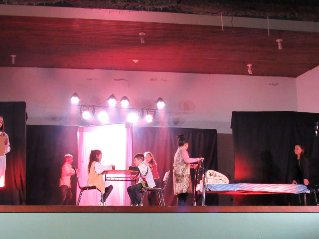 Encerrando as Mostras, o distrito de Porto Batista recebeu no dia 1º de agosto, no ginásio Waldomiro Kuhn, a apresentação do grupo “Porto Artista”, da Escola Jozué Machado dos Santos. O grupo subiu ao palco com a peça “Dois Mundos” que contou a história da Maria que se apaixonou por Junior. Até aí tudo bem, se o Junior não fosse o menino mais lindo da escola, o mais desejado desde o pré até a oitava série, e a Maria não fosse a Tortinha, a menina que é debochada por todos na escola. A peça visita o universo do Bulling, prática comum e difundida principalmente dentro do universo das escolas. Mais de 100 pessoas assistiram essa apresentação. Alunos do Porto Batista apresentando a peça “Dois Mundos”